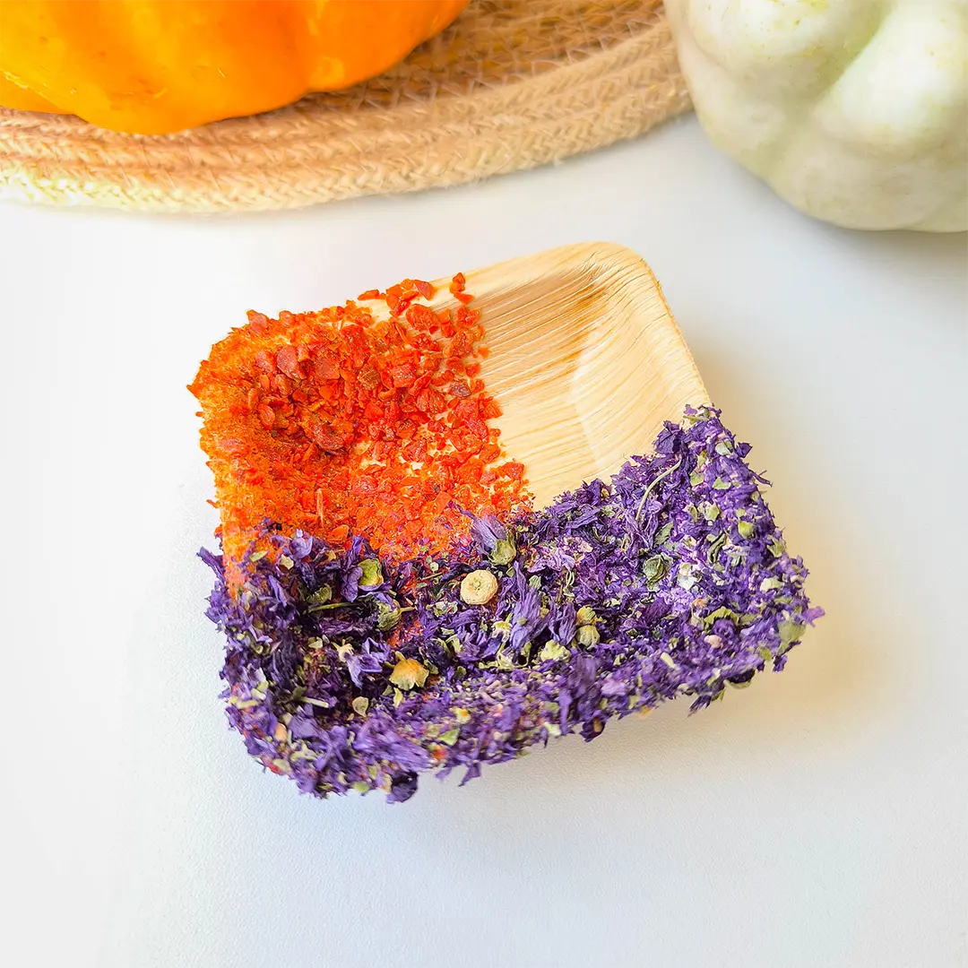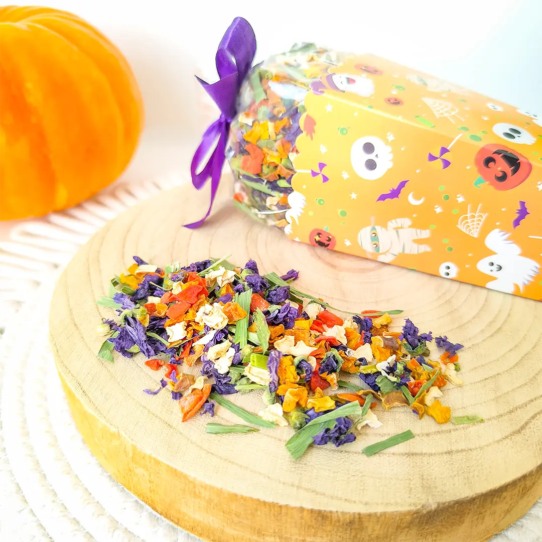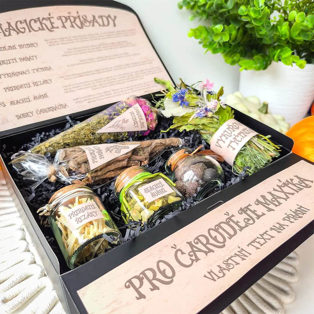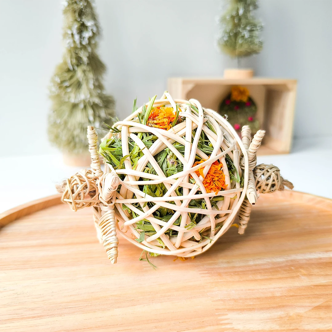 V bezobilném Vánočním boxíku najdeš Senové bločky s jablíčkem, Bojínkovou řezanku, Hvězdičky se slunečnicí, Senový bonbónek, Pralinky v plechové dózičce, Květinové mlsání, Plátky zeleniny a Dřevěné ozdoby.