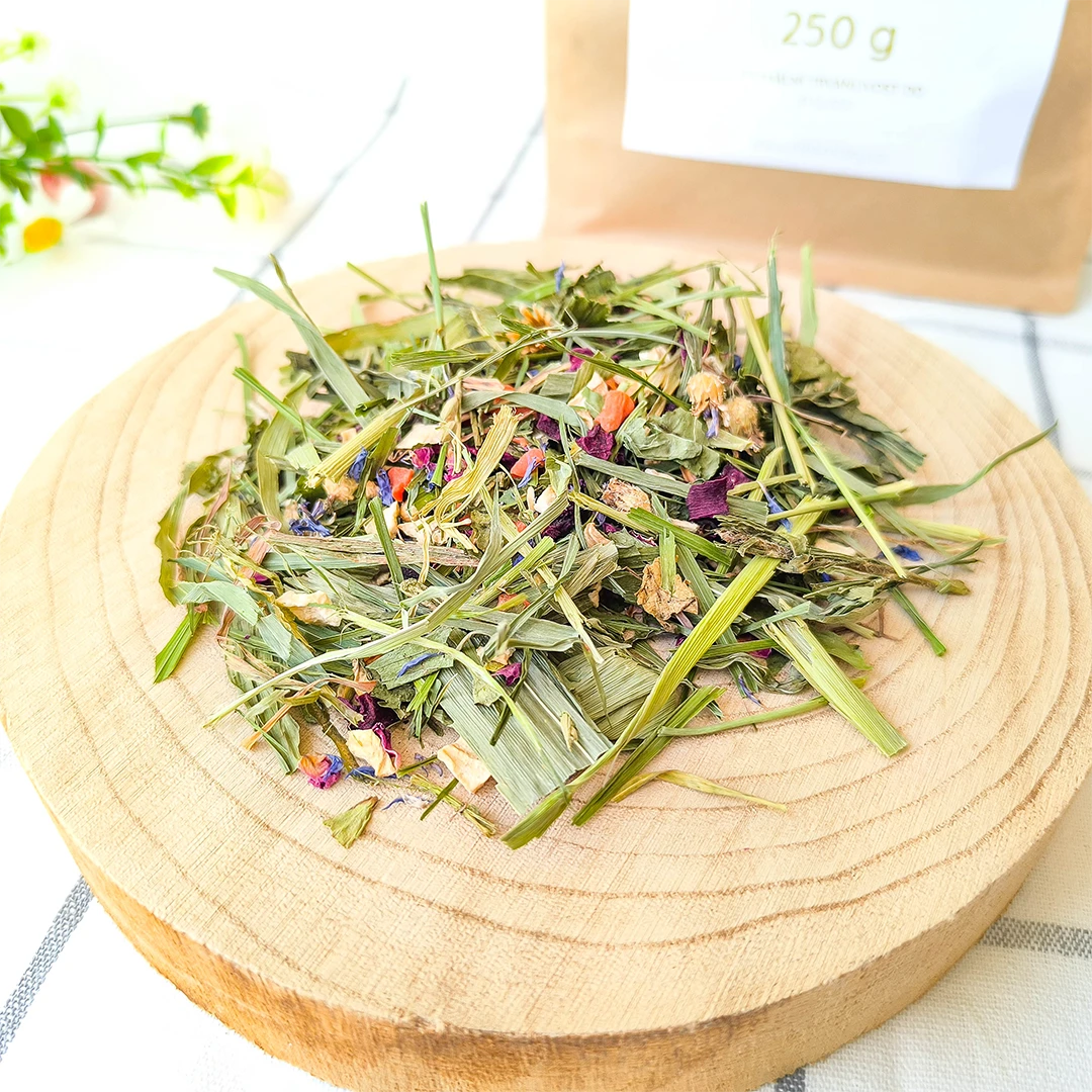 Mikulášský obsahuje směsm senových granulek, petržele, zeleniny a sladkého jablíčka.
